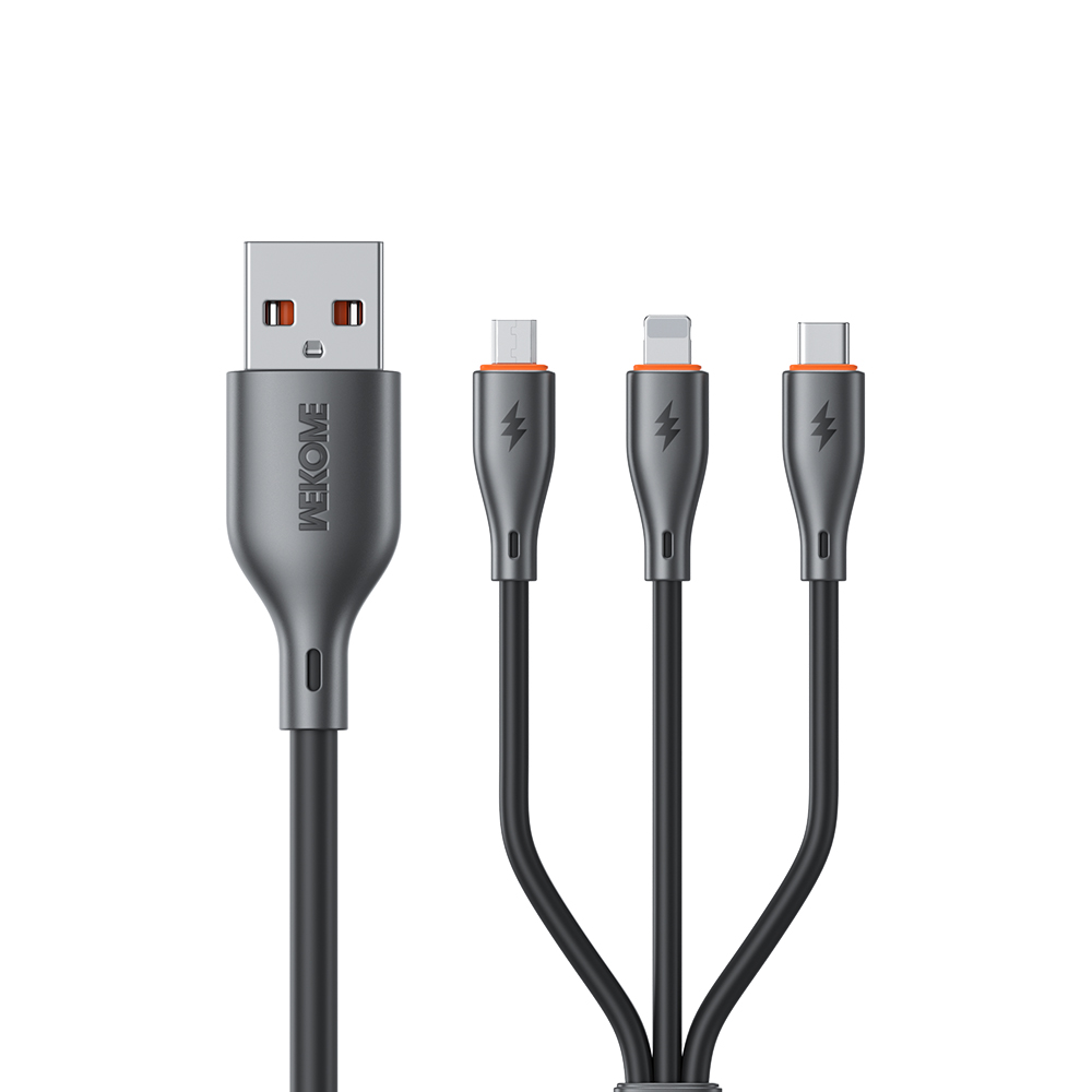 Το WEKOME WDC-79 είναι ένα πρακτικό και ανθεκτικό καλώδιο 3-σε-1 που προσφέρει φόρτιση και μεταφορά δεδομένων για συσκευές με θύρες USB-C, Lightning και MicroUSB – όλα σε ένα.