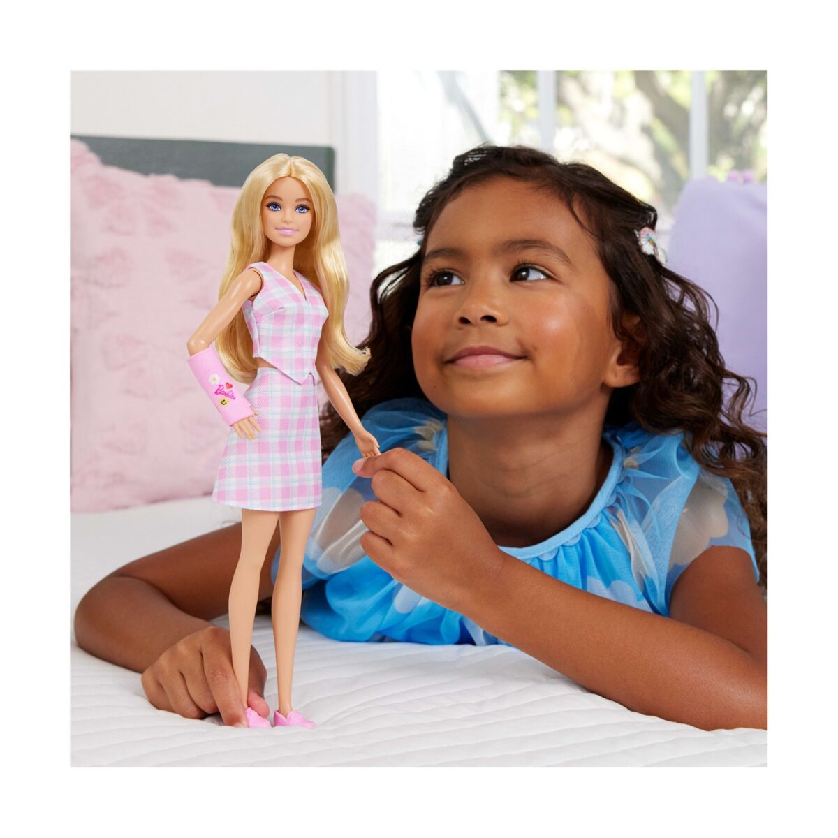 Mattel Barbie: Fashionistas – Pink Arm Cast and Plaid Top & Skirt Blonde Doll (JJN56)