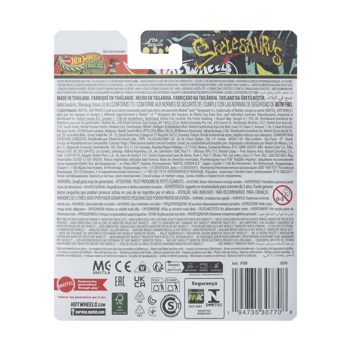 Mattel Hot Wheels: Monster Trucks Glow In The Dark – Skelesaurus Vehicle (JCG70)