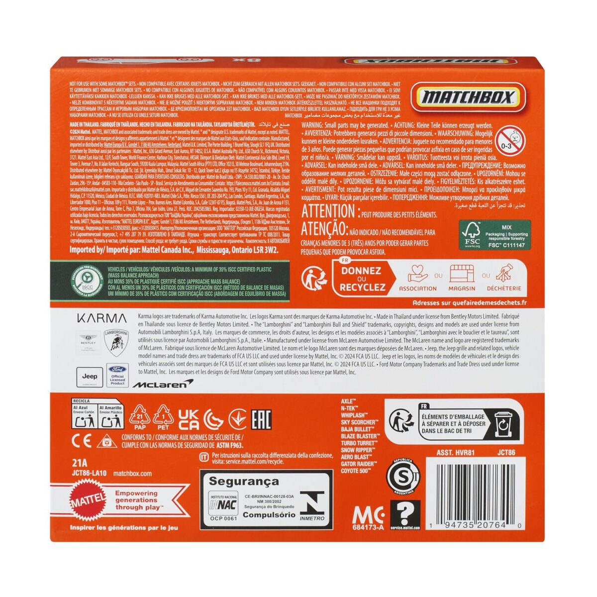 Mattel Matchbox – Karma Revero Vehicle Set Of 8 (JCT86)