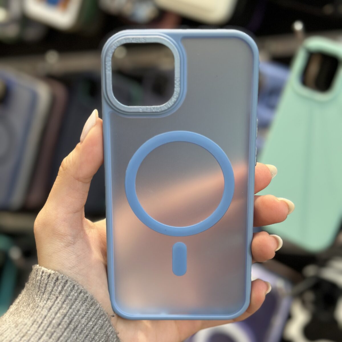 Κομψή θήκη σιλικόνης iPhone 13 magsafe σε γαλάζιο χρώμα.